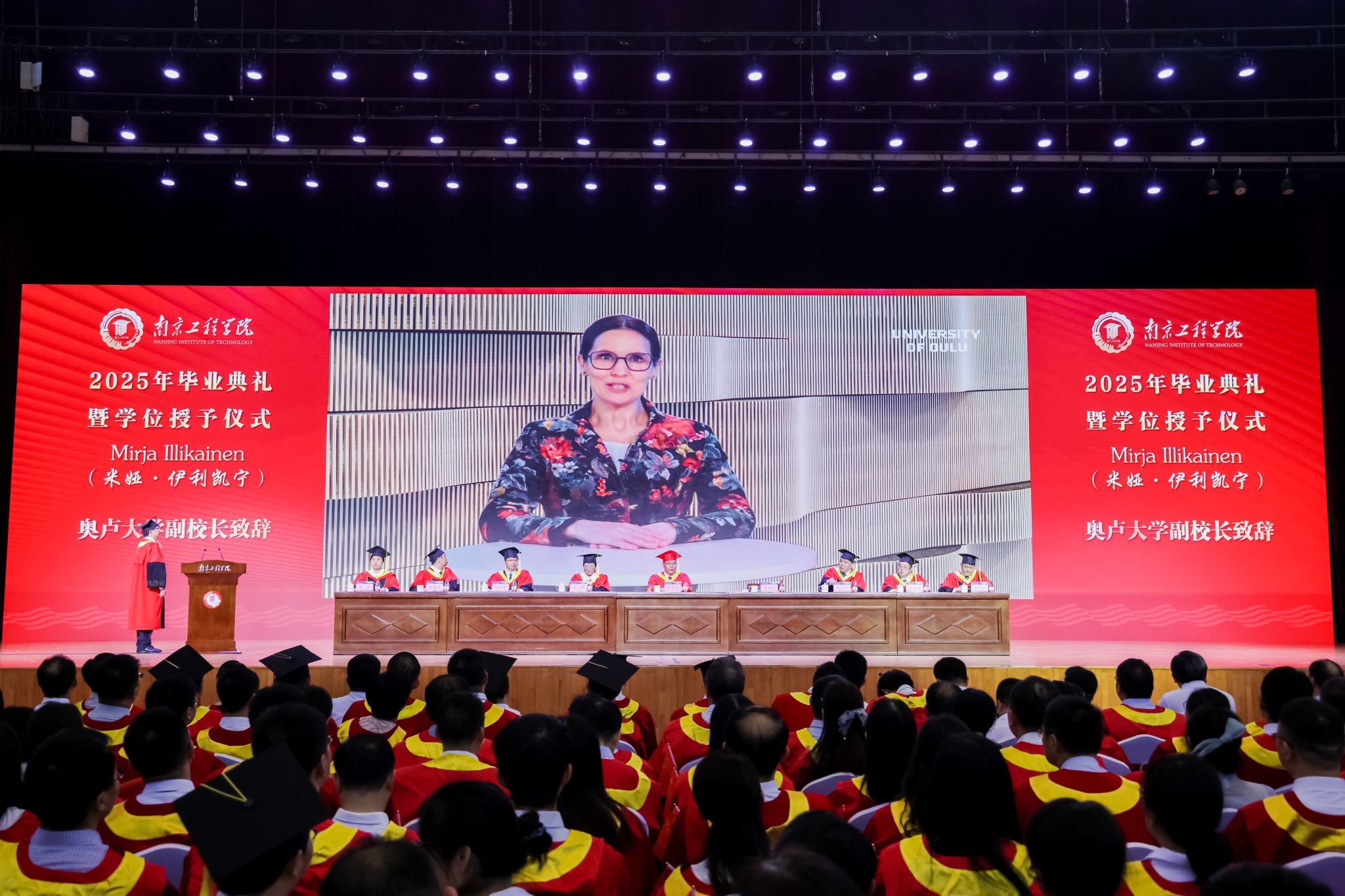 芬兰奥卢大学副校长米娅·伊利凯宁以线上致辞的方式,向中芬合作办学项目2025届毕业生表示热烈的祝贺,向对毕业生们给予悉心指导和关怀的老师、家长致以最诚挚的敬意和衷心的感谢,并祝愿同学们在自己选择的职业生涯中收获幸福的人生。