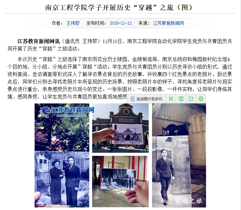 江苏教育新闻网讯(通讯员 王祎黎)11月10日,凯发k8官网自动化学院学生党员与共青团员共同开展了历史“穿越”之旅活动。