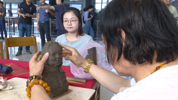 惠山泥人专业委员会主任、惠山泥人传承人徐根生请在场的一位大学生当模特,不到20分钟,就完成了一件这样的作品。