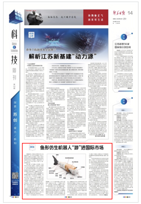《新华日报?科技周刊》:鱼形仿生机器人“游”进国际市场