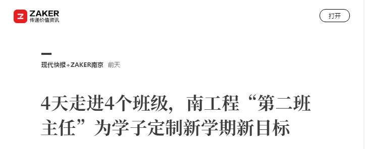 《现代快报》、《Zaker》:4天走进4个班级,南工程“第二班主任”为学子定制新学期新目标