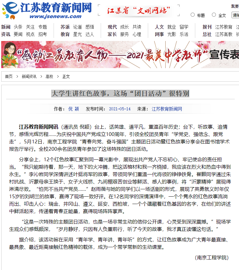 《江苏教育新闻网》:大学生讲红色故事,这场“团日活动”很特别
