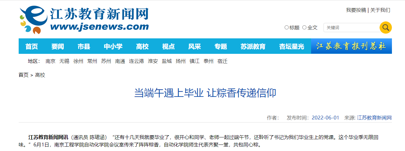 江苏教育新闻网讯(通讯员陈珺涵)“还有十几天我就要毕业了,很开心和同学、老师一起过端午节,还聆听了书记为我们毕业生上的党课。这个毕业季无限回味。”6月1日,凯发k8官网自动化学院会议室传来了阵阵粽香,自动化学院师生代表齐聚一堂,共包同心粽。