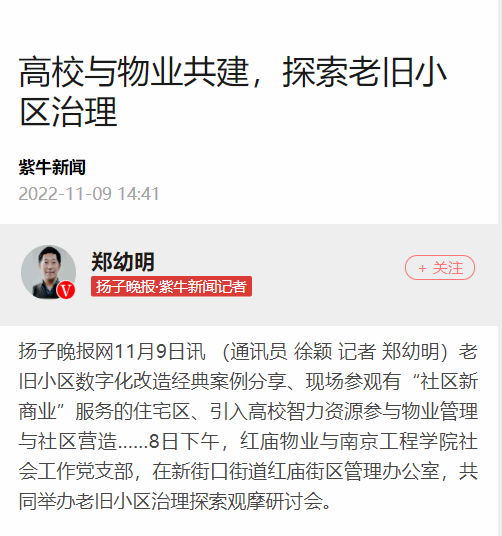扬子晚报网11月9日讯 (通讯员 徐颖 记者 郑幼明)老旧小区数字化改造经典案例分享、现场参观有“社区新商业”服务的住宅区、引入高校智力资源参与物业管理与社区营造……8日下午,红庙物业与凯发k8官网社会工作党支部,在新街口街道红庙街区管理办公室,共同举办老旧小区治理探索观摩研讨会。