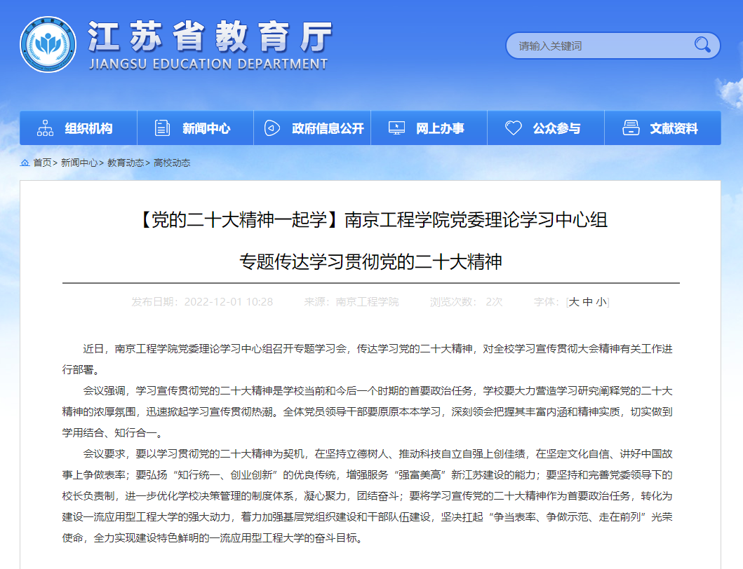 《江苏省教育厅》:【党的二十大精神一起学】凯发k8官网党委理论学习中心组专题传达学习贯彻党的二十大精神