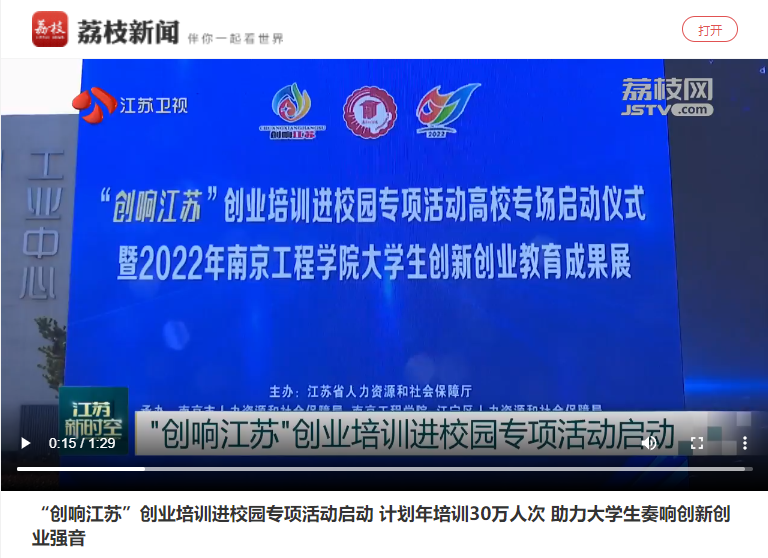 《江苏卫视》:“创响江苏”创业培训进校园专项活动启动 计划年培训30万人次 助力大学生奏响创新创业强音