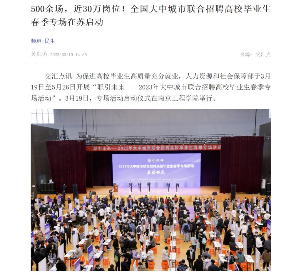 《交汇点》:500余场,近30万岗位!全国大中城市联合招聘高校毕业生春季专场在苏启动