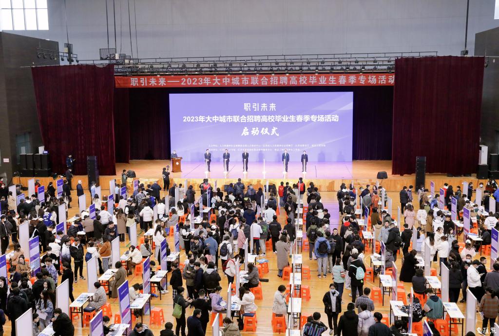 交汇点讯 为促进高校毕业生高质量充分就业,人力资源和社会保障部于3月19日至5月26日开展“职引未来——2023年大中城市联合招聘高校毕业生春季专场活动”。3月19日,专场活动启动仪式在凯发k8官网举行。