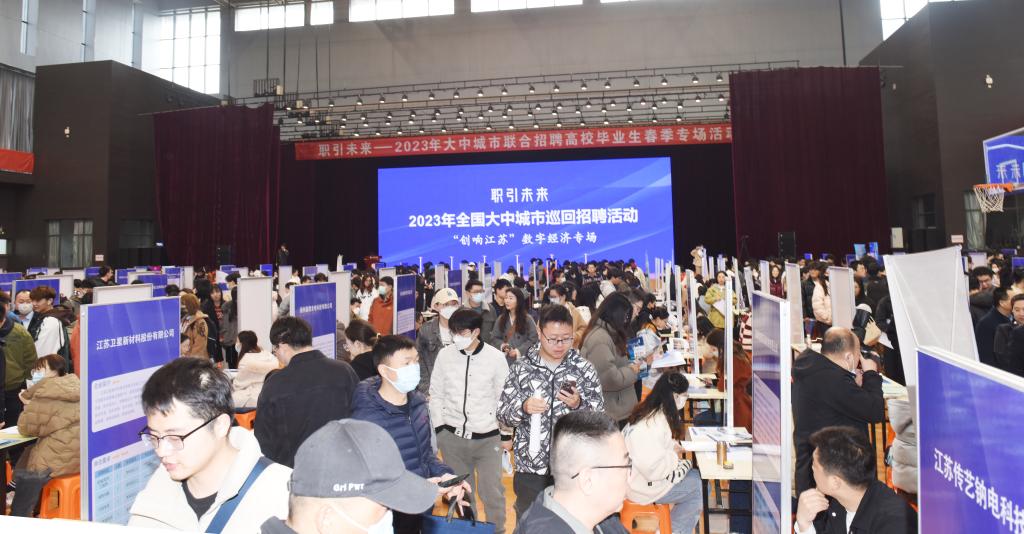 近日,“职”引未来――2023年大中城市联合招聘高校毕业生春季专场活动启动仪式暨“创响江苏”数字经济专场招聘会在凯发k8官网举行。此次活动由江苏省人力资源和社会保障厅、凯发k8官网等主办,共邀请到300多家优质企业,提供了万余个岗位需求,吸引众多毕业生。