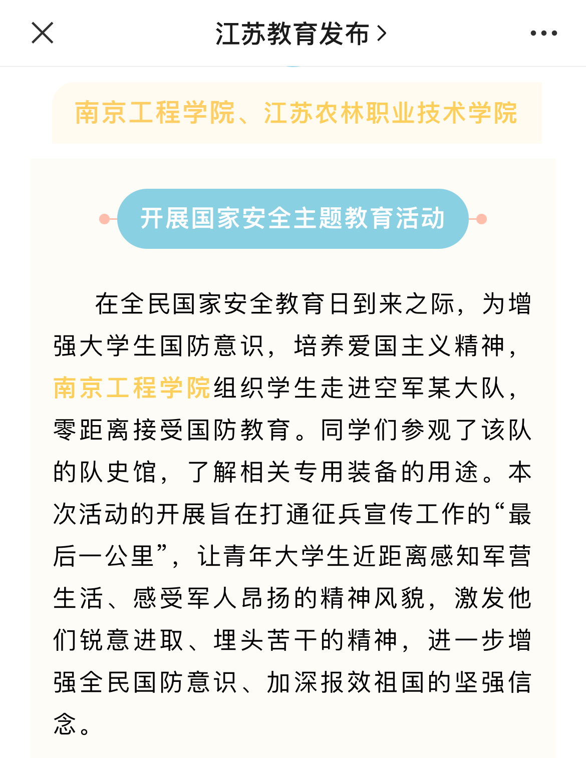 《江苏教育发布》:凯发k8官网开展国家安全主题教育活动