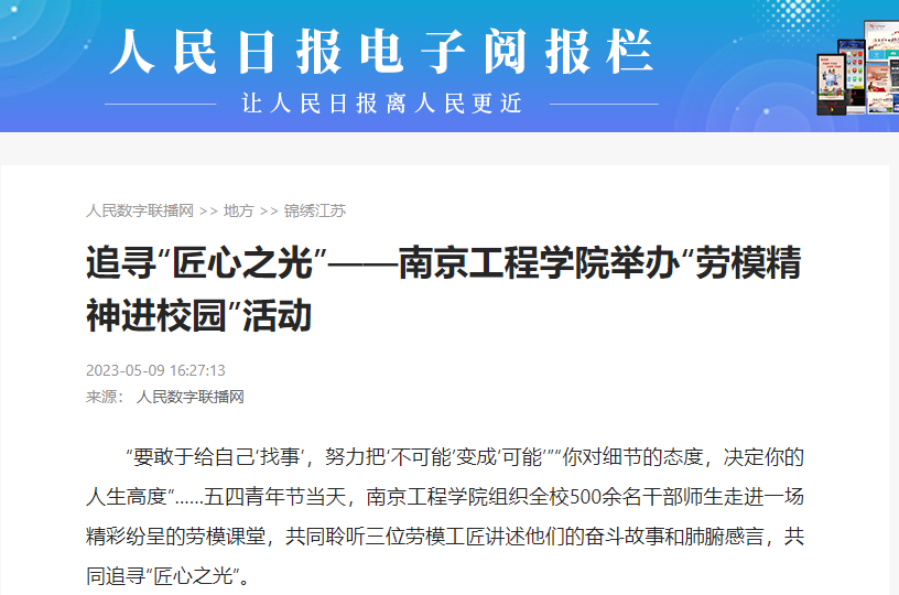 《人民日报社》:追寻“匠心之光”——凯发k8官网举办“劳模精神进校园”活动