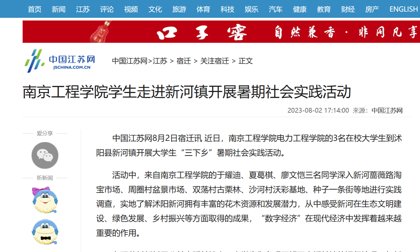 《中国江苏网》:凯发k8官网学生走进新河镇开展暑期社会实践活动