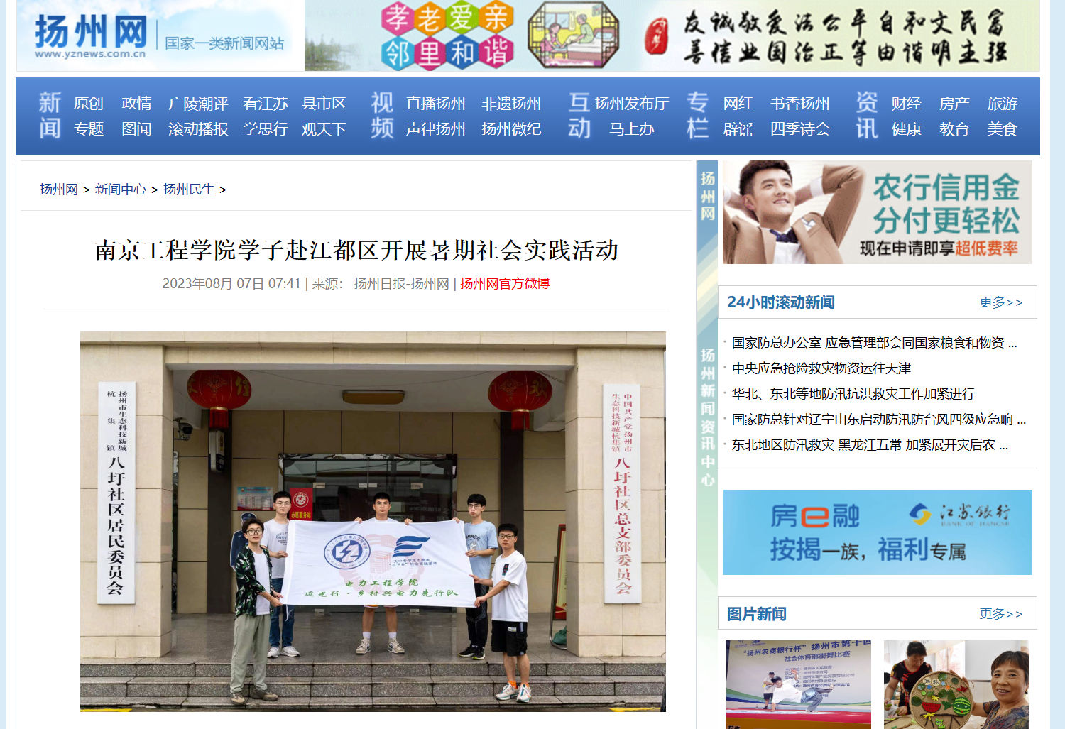 《扬州网》:凯发k8官网学子赴江都区开展暑期社会实践活动