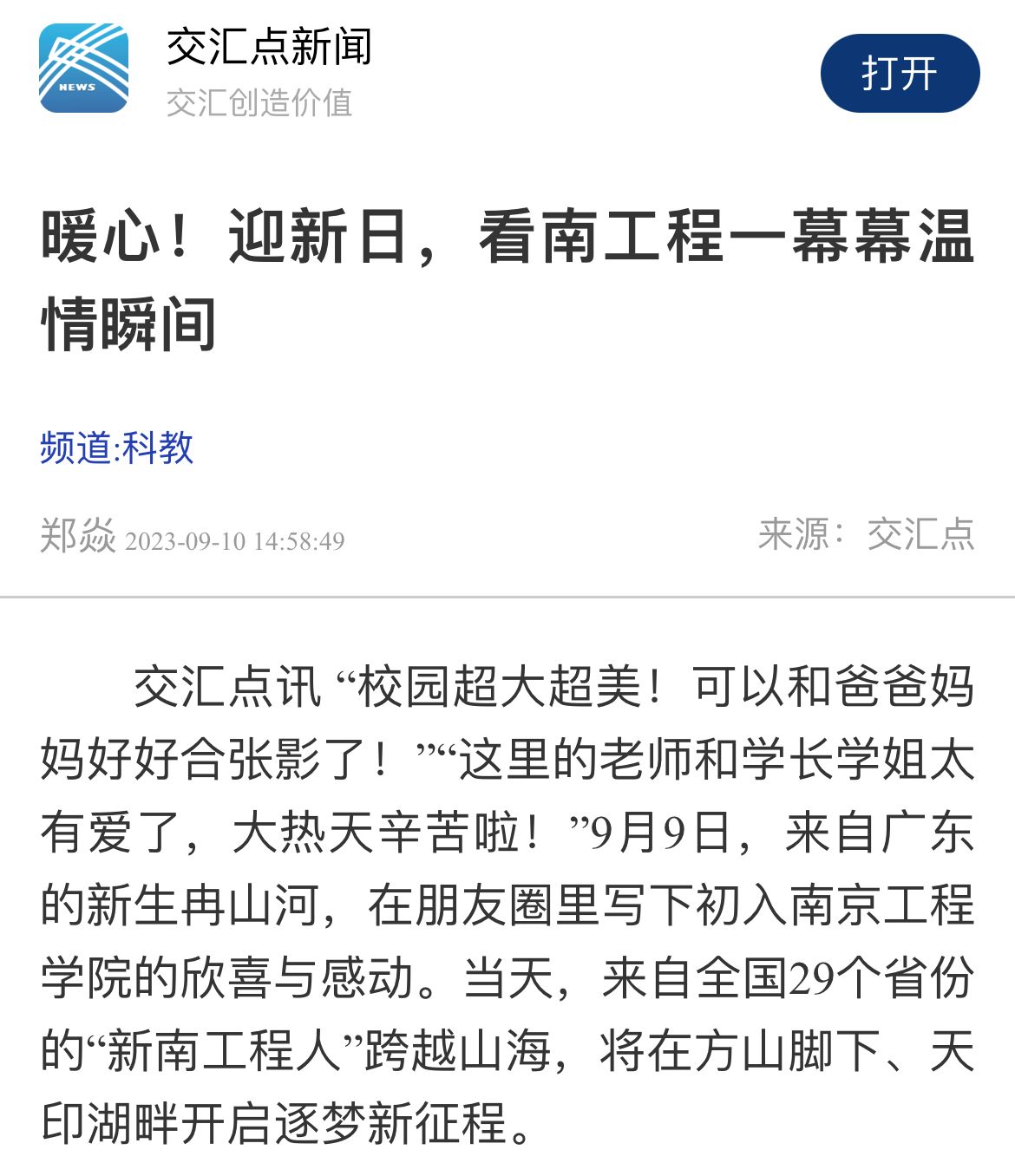 《现代快报》:两代南工程人的聚会!迎新现场新生父母遇到了当年的舍友