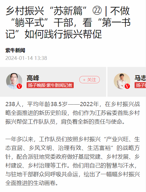 《扬子晚报》:乡村振兴“苏新篇”? | 不做“躺平式”干部,看“第一书记”如何践行振兴帮促