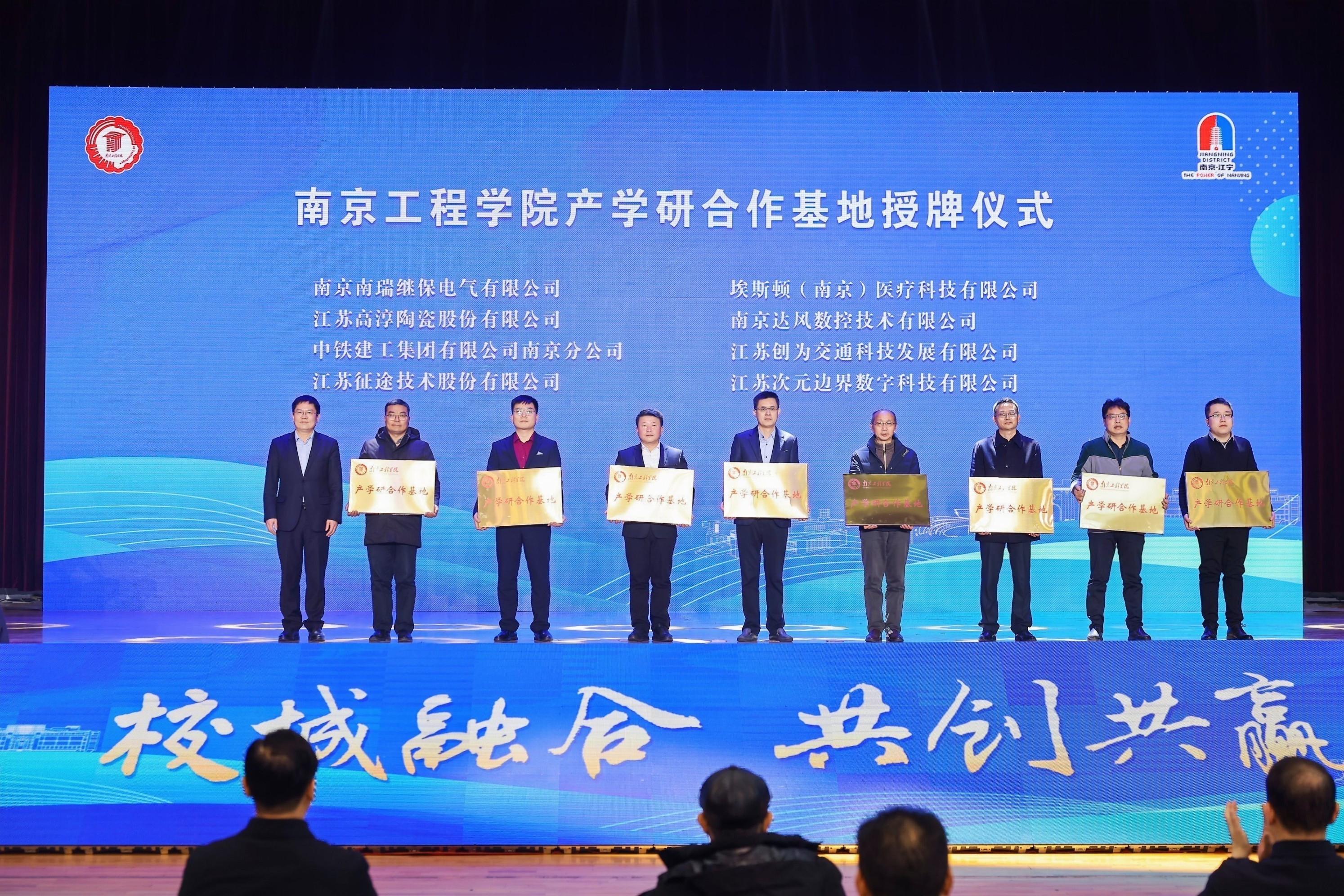会上还发布了南工程数字人IP形象,成立了校城科技发展联盟,进行了科技攻关项目对接签约,为产业教授颁发聘书,并为一批江苏省研究生工作站、产学研合作基地、学生就业基地、实践教育基地授牌。