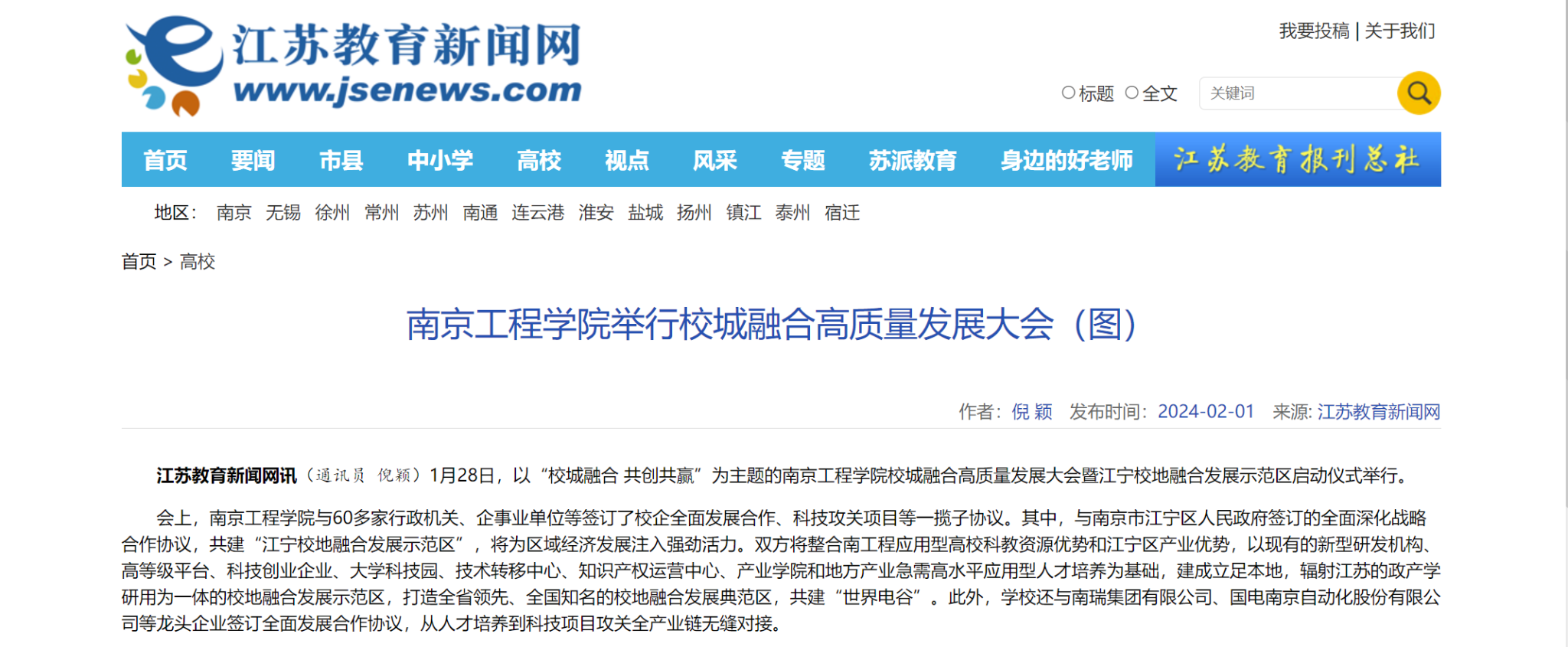 《江苏教育新闻网》:凯发k8官网举行校城融合高质量发展大会