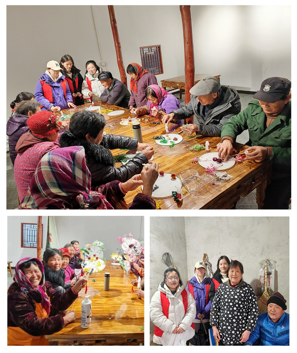 志愿团队还走进村里,上门入户为老人普及安全知识,他们用通俗易懂、贴近生活的语言,耐心仔细地向村民普及火灾预防、紧急救险等消防知识,帮助村民提高安全防范意识,增强老人的防火意识和火灾逃生自救技能。同时,为弘扬优秀传统文化、丰富居民文化生活,志愿团队组织开展了手工团扇制作活动。从构图布局到色彩搭配,再到粘贴定型,大家边制作边交流,现场气氛其乐融融。村民们纷纷表示:“做扇子活动特别好,既动了手又动了脑还收获了快乐,谢谢大学生们的陪伴。”