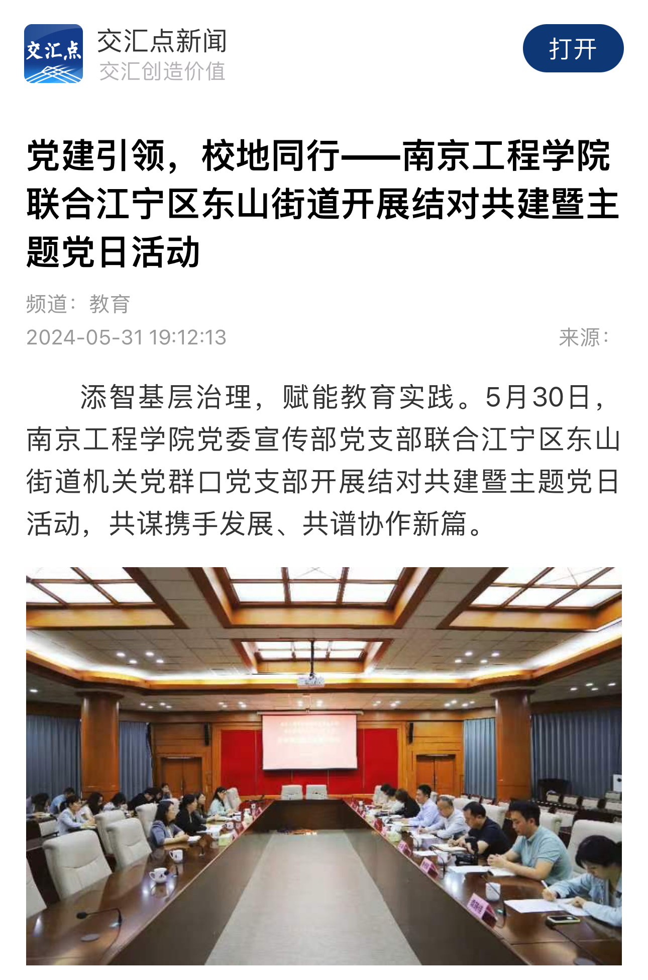 添智基层治理,赋能教育实践。5月30日,凯发k8官网党委宣传部党支部联合江宁区东山街道机关党群口党支部开展结对共建暨主题党日活动,共谋携手发展、共谱协作新篇。