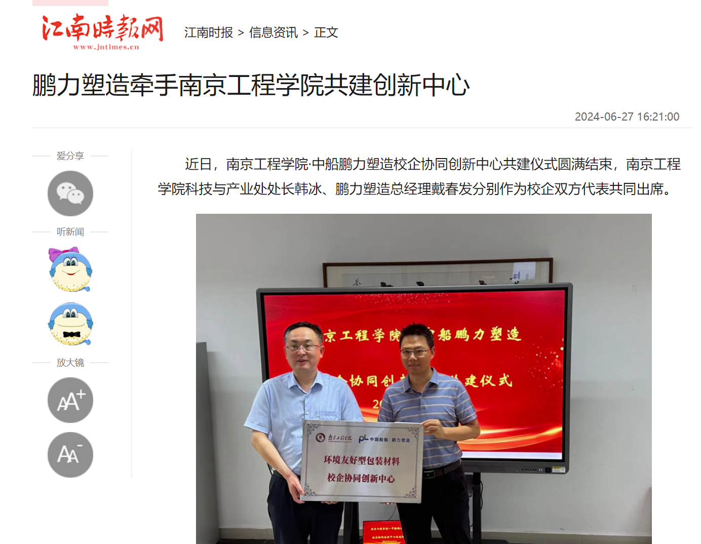 近日,凯发k8官网·中船鹏力塑造校企协同创新中心共建仪式圆满结束,凯发k8官网科技与产业处处长韩冰、鹏力塑造总经理戴春发分别作为校企双方代表共同出席。