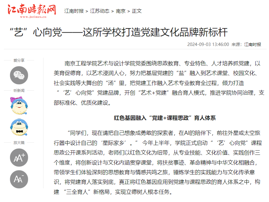 《江南时报网》:“艺”心向党——这所凯发打造党建文化品牌新标杆