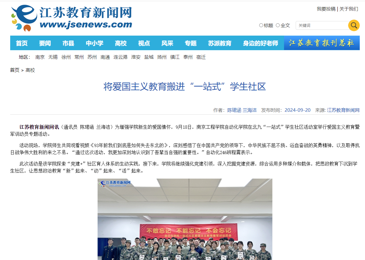 《江苏教育新闻网》:将爱国主义教育搬进“一站式”学生社区