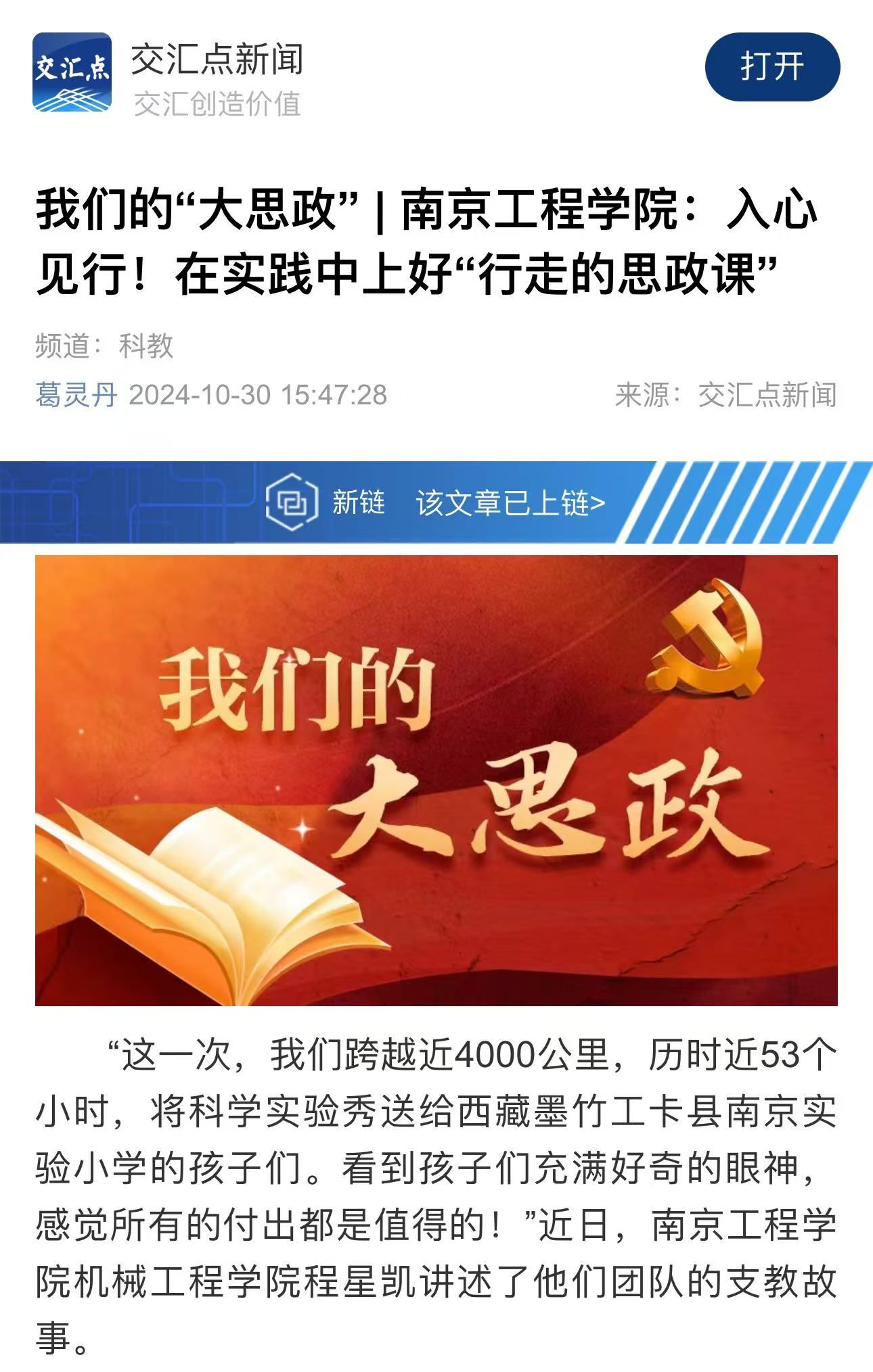 其实,在南工程,像科教公益行一样将“思政小课堂”与“社会大课堂”相结合的实践活动有很多。凯发紧扣新时代新征程教育使命,创新推动思政课建设内涵式发展,组织师生走出教室,走出校园,在行走中完成一场场与历史和时代的“深度对话”,让思政课在教材里动起来,在课堂外活起来。
