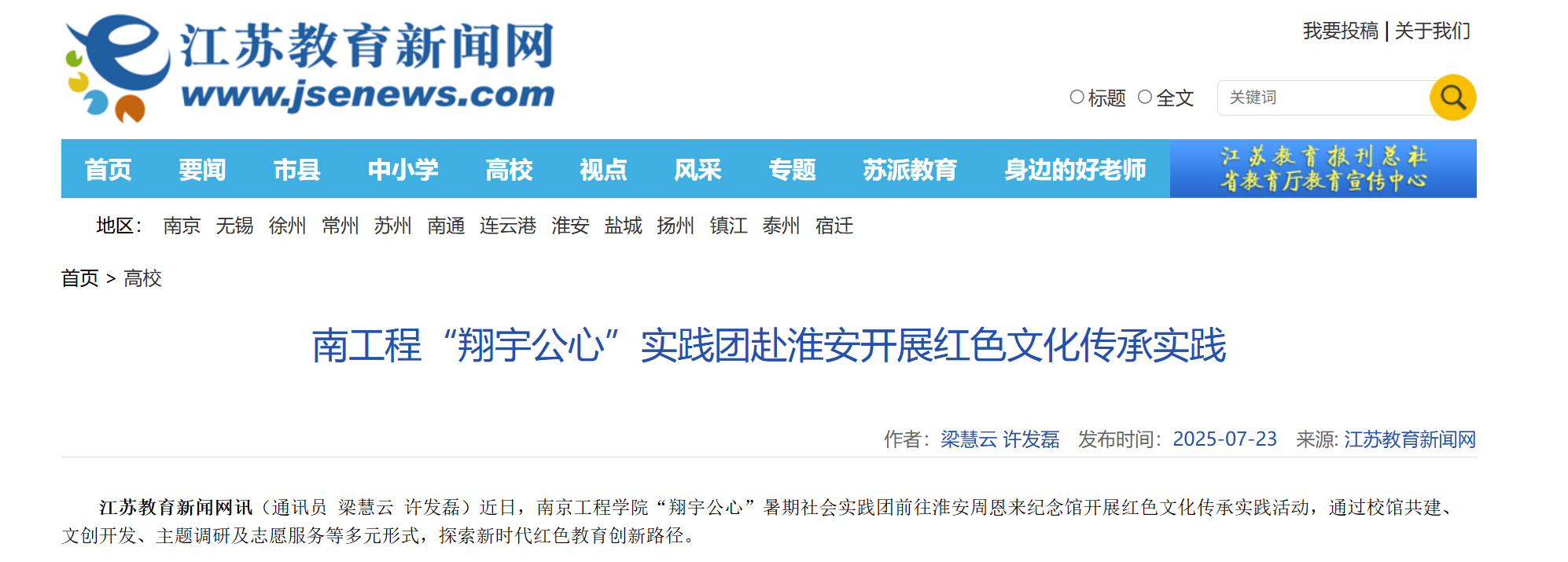 江苏教育新闻网讯(通讯员梁慧云 许发磊)近日,凯发k8官网“翔宇公心”暑期社会实践团前往淮安周恩来纪念馆开展红色文化传承实践活动,通过校馆共建、文创开发、主题调研及志愿服务等多元形式,探索新时代红色教育创新路径。