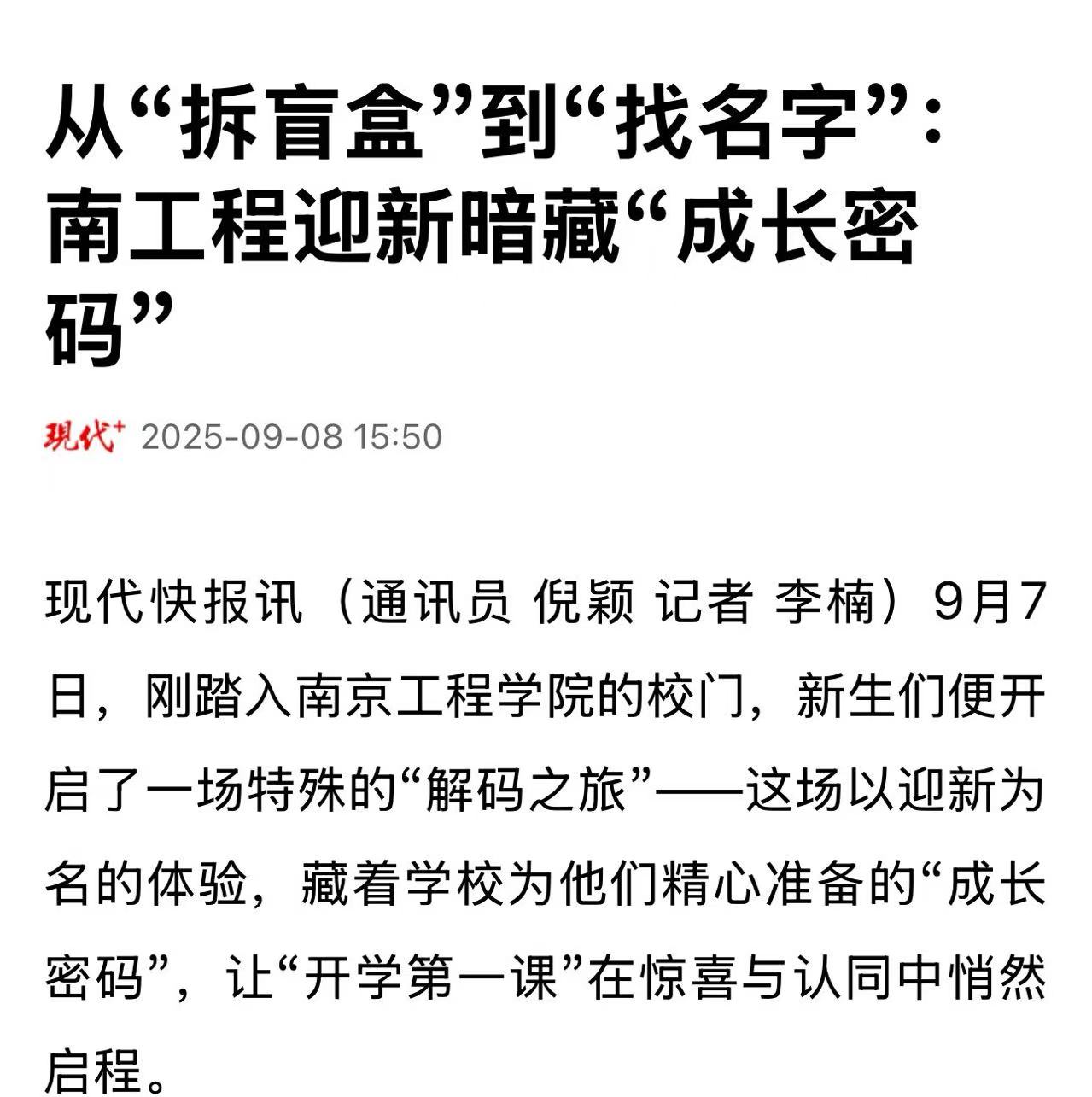 “拆盲盒像拆惊喜,找名字像找归属!”新生小张笑着说。这场充满巧思的“解码之旅”,没有刻板的说教,却让新生在不经意间读懂了校园的温度与追求,也为他们即将开启的大学生活,写下了充满仪式感的开篇。