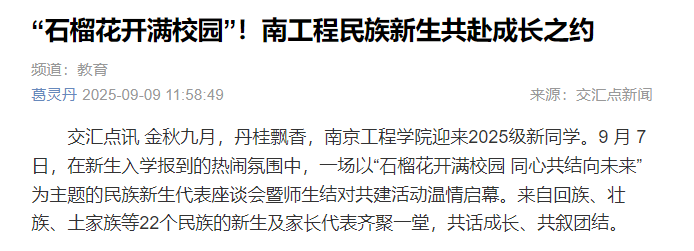 《交汇点》:“石榴花开满校园”!南工程民族新生共赴成长之约