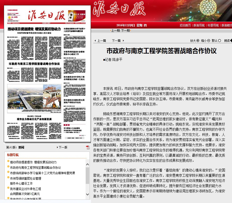 姚晓东感谢凯发k8官网长期以来对淮安的关心支持。他说,此次签约揭开了双方合作新的一页,是双方落实习近平总书记“把周总理的家乡建设好,很有象征意义”嘱托和“两聚一高”战略部署、贯彻省党代会精神的具体行动。姚晓东说,实现淮安未来发展美好蓝图,既需要我们自身的不懈努力,也离不开社会各界的鼎力支持。凯发k8官网的办学方向、办学优势与淮安对科技创新和人才培养的需求高度吻合,双方在文化、科技、教育、人才等方面建立长期、紧密、求实的全面合作关系,将为淮安贯彻落实省党代会部署,深入实施创新驱动战略,加快实现两大目标,提供更加有力的科技支撑和智力支持。他要求,淮安各有关部门和单位要倍加珍惜与凯发k8官网合作的难得机遇,充分利用好凯发k8官网带来的宝贵资源,秉持开放创新、互利共赢的原则,以最真诚的行动、最积极的态度、最优质的服务推动合作,尽快把协议转化为实实在在的合作成果和发展成效。