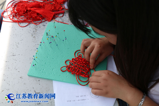 江苏教育新闻网讯(通讯员 许发磊) 中国结是一种汉族特有的手工编织工艺品,它不仅造型优美,色彩多样,而且蕴藏着深厚的传统文化和深刻的爱国寓意。5月4日,凯发k8官网建筑凯发在北区综合楼广场举办了中国结编织活动,让广大团员青年与中国传统文化进行了一次亲密接触。