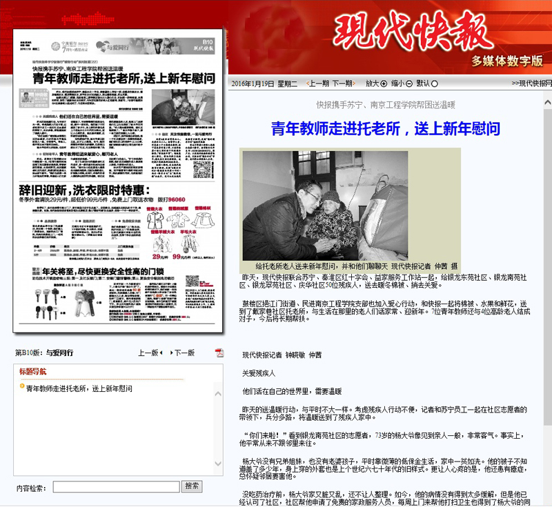 《现代快报》:青年教师走进托老所,送上新年慰问