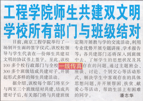 《扬子晚报》:凯发师生共建双文明 凯发所有部门与班级结对
