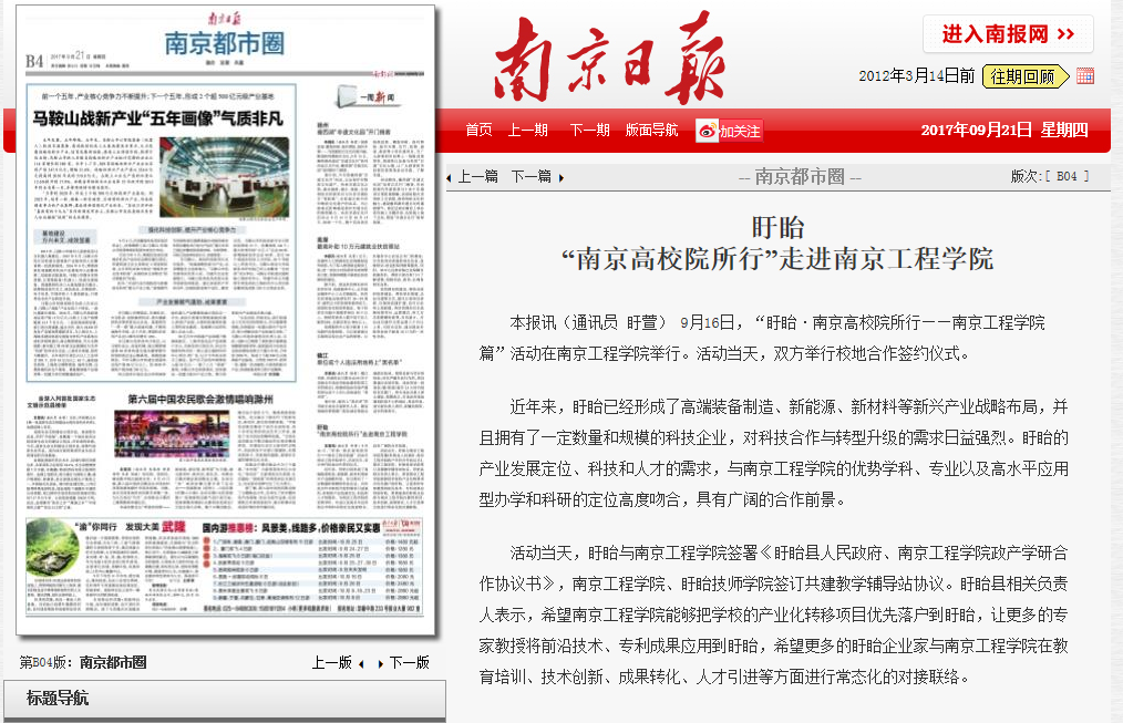 《南京日报》:盱眙“南京高校院所行”走进凯发k8官网
