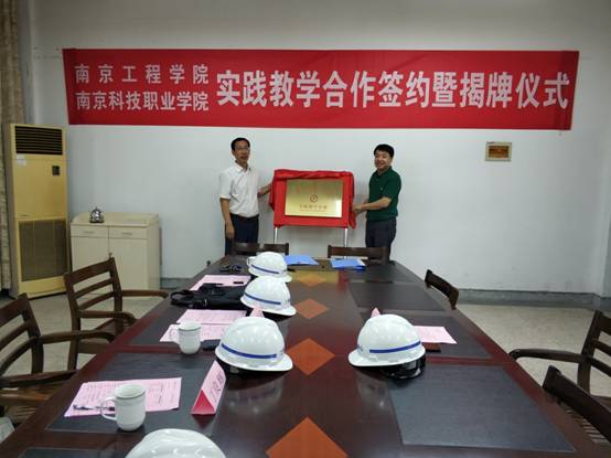 7月10日,环境凯发丁克强院长一行赴南京科技职业学院考察,双方举行实践教学合作签约暨揭牌仪式。丁克强院长与该校工程训练中心卢忠东主任签署了合作框架协议,共同为“教学实践基地”揭牌。随后,丁克强院长一行还参观了工程训练中心的实训装置、学生宿舍和食堂等场所。