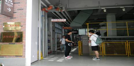 7月8日,团队代表参观民国首都电厂——下关发电所。下关电厂作为中共地下组织护厂斗争地,厂房和发电设备在经历侵华日军占领和严重破坏后,仍能够经过简易翻修立即投入使用,给抗战胜利后的南京市民送去一盏盏光明,为战后恢复的南京城区解决燃眉之急。同学们来到电厂旧址公园参观工业遗存地,看着民国时期遗留下来的旧式电动机、运煤传送带,感受电厂设备的更新换代。位于公园二楼的“百年光影”展览室中,陈列着过去电厂的工作日志以及当时电厂的简介,同学们清晰地了解新中国尚不成熟的电力事业起步发展历史。
