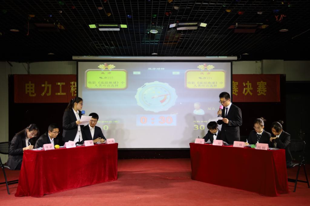 决赛围绕“电影《流浪地球》中,人类应该选择‘希望’还是‘火种’”这个话题展开辩论,共分为开篇立论、攻辩、攻辩小结、自由辩论、总结陈词五个环节。正方辩手开篇理论,提出人类文明以及人类本质论述应该选择“希望”。反方据理力争,从人类传承的准确性以及科学的遗传可能性论述了应该让“火种”传承下去。整场比赛,气氛紧张热烈,双方辩手言辞犀利、唇枪舌战,充分展示了辩手们的严密的逻辑思辨能力和良好的临场应变能力,观众席上掌声不断。最终电力191班代表队赢得了冠军,电力191班的陈霜被评为最佳辩手。