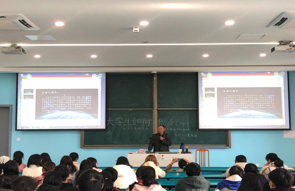 11月20日下午,经济与管理学院在经管楼C109举办 “大学生如何做好科创”主题讲座。该院副院长,物流191第二班主任黄传峰教授担任主讲嘉宾。