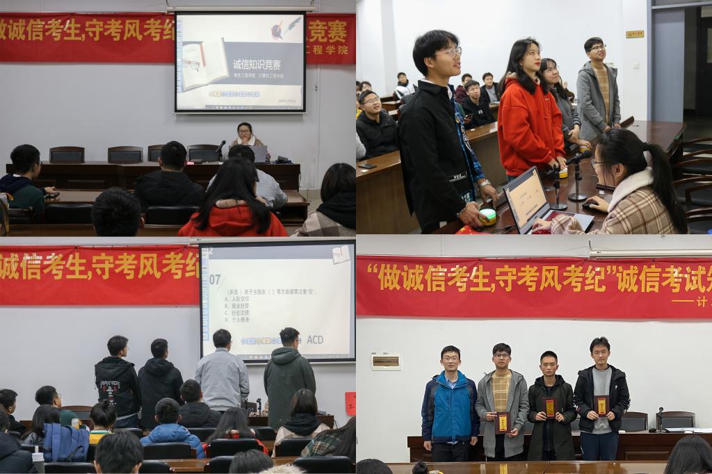 据悉,本次学风建设系列活动还包括了四级模拟考与诚信考试知识竞赛等内容。经历了一场四级模拟考之后,学生们纷纷表示,此次模拟为他们提供了良好的自我检验平台,在督促他们查漏补缺、找准定位、调整策略、备考等方面更具有针对性和方向性。在诚信考试知识竞赛中,选手们精神高度集中,答题迅速,展现了丰富的知识储备,体现了当代大学生手速与脑力的比拼。通过三轮精彩角逐,网嵌181班刘威荣获一等奖,网络181班曹斌和网嵌193班郑震荣获二等奖,网嵌181班瞿康健、软件191班尹天扬和计嵌191班曾灿并列三等奖。
