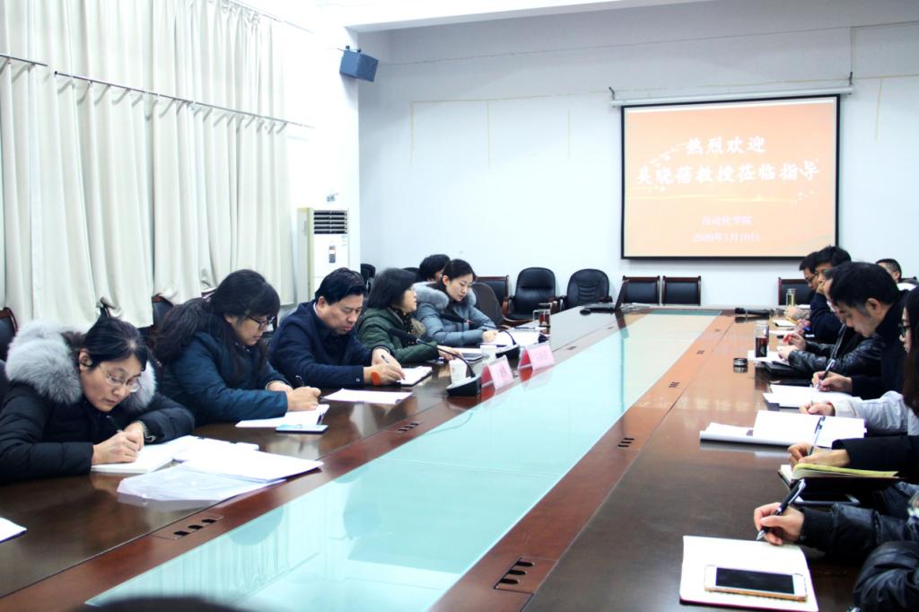 1月10日下午,教育部自动化类专业教学指导委员会副主任委员、南京理工大学吴晓蓓教授应邀来我校自动化学院指导工作。我校党委常委、副院长朱晓春出席。学院领导和科研骨干教师参加座谈。