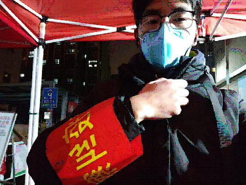 D数加工182班石熠是一名入党积极分子,同时也是一名学生干部,在严峻的疫情防控期间,他成为了一名志愿者,在定点社区协助工作人员完成往来人员的体温测量、信息登记和往来车辆排查等工作。下午5点至晚上10点是他的工作时段,面对气温渐低、来往人员多的困难,他毫不退却。
