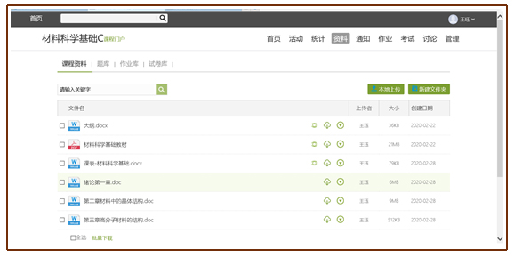 《材料科学基础C》是材料科学与工程、金属材料工程专业的核心课程,也是学生本科阶段的第一门专业基础课,单学期112学时,知识量大、难度高。为了能够达成课程的教学目标,课程团队多次在微信、QQ群进行深入讨论,探讨线上授课的基本形式,确立了“讲练结合”、“视频+讨论”、“在线作业结合测试”等基本方法,保证学生能够深入网络课堂,达到不低于线下授课的教学效果。