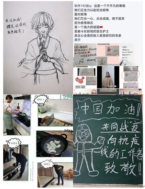 疫情发生以来,该院湖北籍学生成为了老师和同学们心头最深的牵挂。该院学工办全体老师认真做好湖北籍学生关心关爱工作,扎实做到“资助帮扶到位、学习支持到位、情况沟通到位、关心关怀到位、心理关爱到位”,该院28名滞留湖北学生成立临时团支部,刘艳华副书记多次在群里关心询问同学们的生活和学习情况,鼓励大家坚定信心、静待开学。这支“特殊”的团支部还开展了“宅家大作战,美食云分享”活动,传递积极、乐观和健康的理念。该院学生党支部还自发开展了“党员一对一”结对关怀活动,每名学生党员结对一名滞留湖北的学生,就在线学习、就业等问题开展“云互动”,还相约“云上”健身打卡,增强战胜疫情的信心和决心。