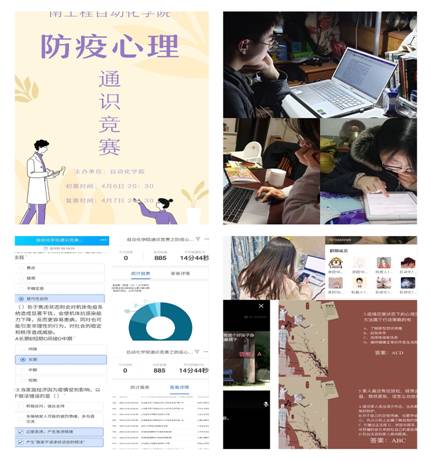 为了帮助大学生在疫情期间持续关注身心健康,日前,自动化学院举办了以“逆境同行,从心出发”为主题的线上防疫心理知识竞赛。竞赛分为初赛和决赛两部分,竞赛内容以《新型冠状病毒肺炎疫情防控——江苏省大学生心理健康指导手册》为主,旨在通过比赛形式带动同学们通读学习手册,积极开展自我心理辅导。4月7日,学院借助YY直播平台举行决赛,总时长为1小时。经过初赛的选拔,共有22名同学进入决赛,决赛在初赛的基础上加入了冒险题这一环节,以选手抢麦的形式对ppt上的题目进行抢答。参赛同学们表现出色,不仅展现了他们掌握的防疫心理知识,更考验了他们的心理素质。接下来,学院还将继续整合各类资源,开展更多切实有效的线上心理辅导,帮助同学们调整好身心状态,积极应对即将开始的在校学习生活。