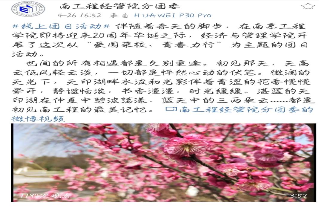 为增强同学们爱校情感,激励同学们奋发向上,经济与管理学院积极响应校团委号召,开展以“爱国荣校,青春力行”为主题的团日活动。本次活动以“爱校、荣校”为主题,将同学们与南工程的情缘分为“初见”、“相知”、“相恋”以及“约定”四部分,激发学生们诉诸行动彰显爱校荣校情怀。