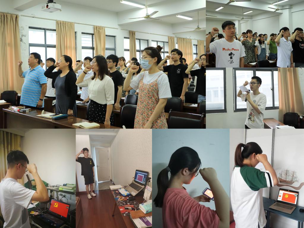 全体学生党员面向党旗举起右手,庄重严肃地宣读入党誓词。“我志愿加入中国共产党,拥护党的纲领,遵守党的章程,履行党员义务,执行党的决定,严守党的纪律,保守党的秘密,对党忠诚,积极工作,为共产主义奋斗终身,随时准备为党和人民牺牲一切,永不叛党。”每一个字都铿锵有力、掷地有声,激励着每位党员不忘初心使命,坚定奋斗决心。希望在未来的工作生活中,毕业生党员们可以想起今日的铮铮誓言,充分发挥党员的先锋模范作用,冲锋在前。