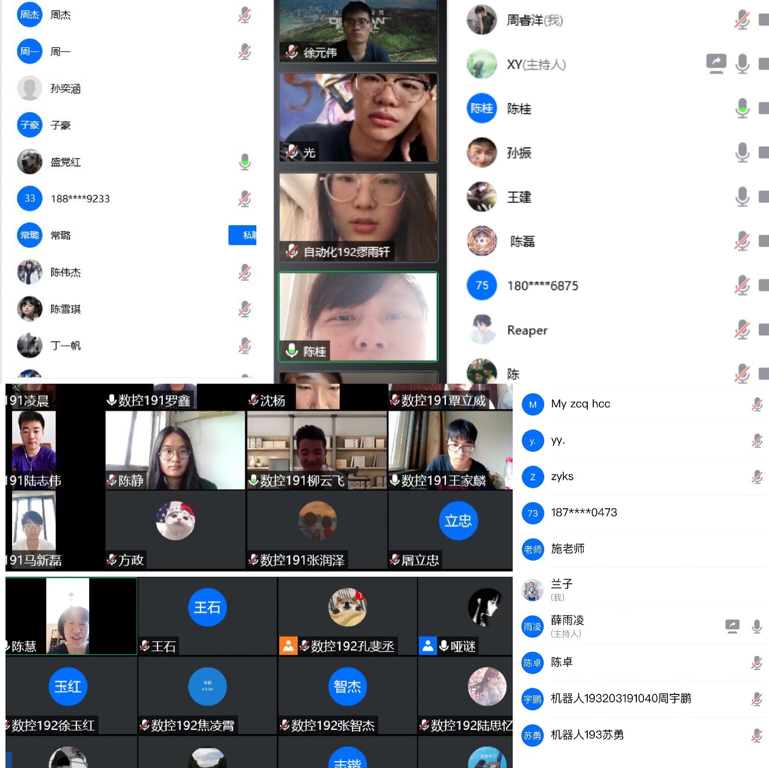 自动化192第二班主任陈桂老师在班会上了解了同学们的居家学习生活,引导大家在疫情期间正确认识逆境与挫折,及时调整负面情绪,以积极向上的健康心态应对当下的学习和生活,培养自己感恩、乐学、坚韧、乐观、奉献等美好品德;数控191第二班主任屠立忠老师通过抗击疫情的英雄小故事,让学生感受抗疫一线逆行英雄的感人事迹,启迪同学们面对疫情对人生做出深入思考;数控192第二班主任陈慧老师和同学们共同观看“大学生心理健康日,遇见更好的自己”视频,结合同学们提出的问题进行讨论并提出相关建议:线上教学这种新的授课方式、学习方式,对同学们来说是个巨大考验,既要适应这种学习节奏,紧跟老师步伐,又要增强自控力,主动学习。希望同学们以积极的心态面对即将到来的考试周,合理安排复习计划;机器人192第二班主任带领同学分析了疫情之下研究生的扩招现状以及对日后我们的发展带来的巨大影响,对同学提出了要求,也寄予了厚望;机器人193第二班主任施昕昕老师树立“逆境携行,你我同心”的理念,引导学生们剖析自己面对疫情的心理状况,树立积极乐观的生活态度,调整情绪,关爱自己,帮助他人。