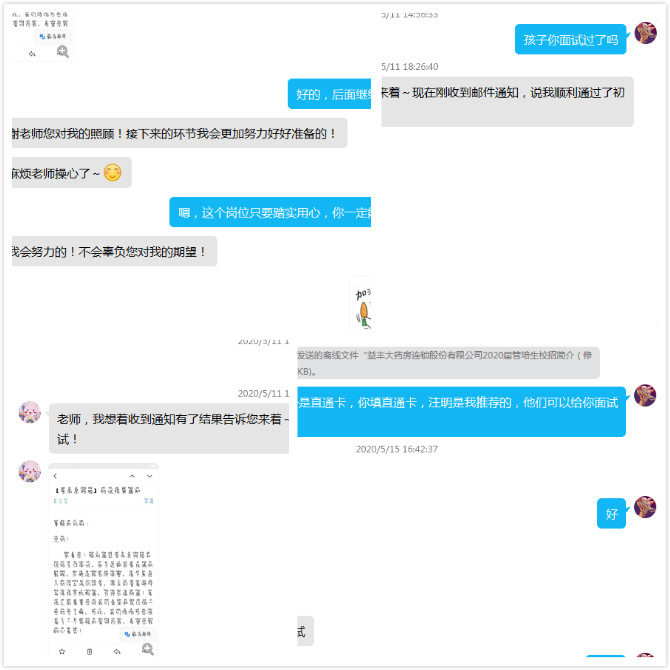 社保191第二班主任张小慧老师将毕业生工作与新生职业生涯规划工作结合起来:一方面积极对接用人单位,及时获取岗位咨询和用人需求,同时注重与毕业生的联系,通过微信群,QQ群等为学生们送去就业信息、优惠政策、就业指导,提供快捷、高效、优质的就业服务;另一方面结合现实就业案例,给大一同学讲述职业生涯规划的重要性,让大一学生在真实案例的解读中尽早确立和完善自身的职业生涯规划。在积极拓宽就业信息渠道的同时,张小慧老师与同学们保持密切联系,做到一对一精准帮扶,实时掌握毕业生就业动态,疫情期间开展就业、考研、职业生涯规划网络咨询服务一百余次。