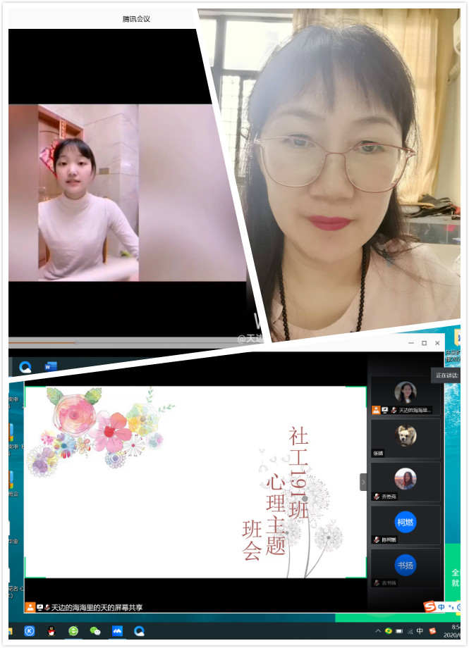 社工191第二班主任王晓红书记在疫情防控期始终关注学生思想状况:3月5日,参加“共抗疫情、爱国力行”系列主题班会,分享抗击疫情中的爱国故事;4月,指导并参与“学习践行习近平总书记给北京大学援鄂医疗队全体90后党员的重要回信精神”系列活动,讲述人文学子的先进事迹;6月12日,主持召开心理健康教育主题班会,了解学生心理动态。通过一次次的活动和与同学们的沟通交流,进一步培养和塑造了学生的责任感和使命感,将爱国主义情怀和凯发的关怀之情厚植于学生心中。